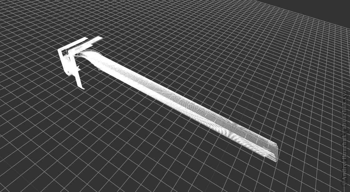 A 3D model of a blade has been developed, roughly corresponding to the object of study. This model will serve as a reference for forming the filling surface.