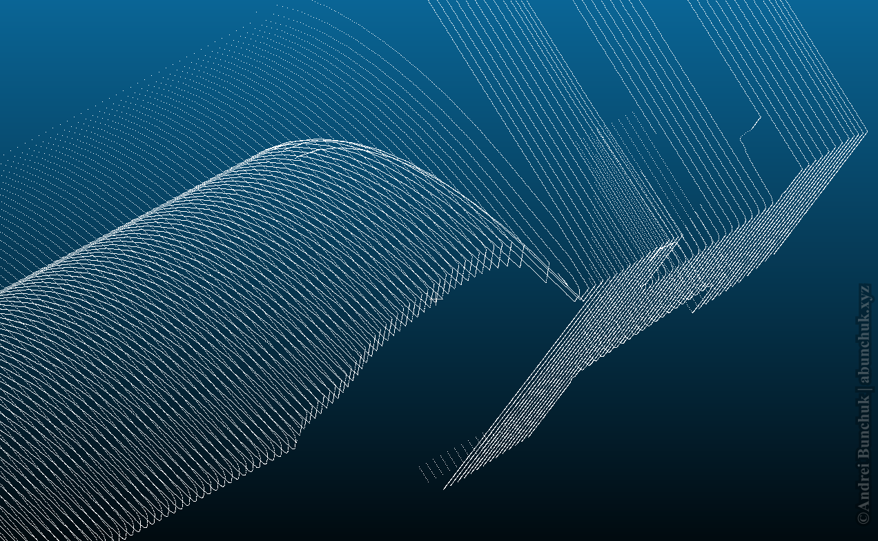 It is recommended to scan the blade from both sides for further comparison with the reference model. It is also possible to scan from one side, but additional conditions for forming the lower boundary of the blade are required. Scanners can be installed on a linear movement system or on a robot. In the case of a robot, the accuracy of forming a common point cloud depends on the accuracy of the robot positioning and on the accuracy of calibration of the robot and scanner in one coordinate system.