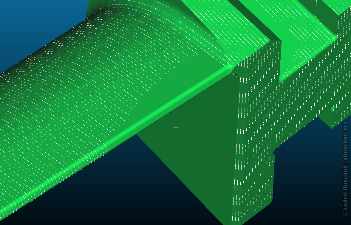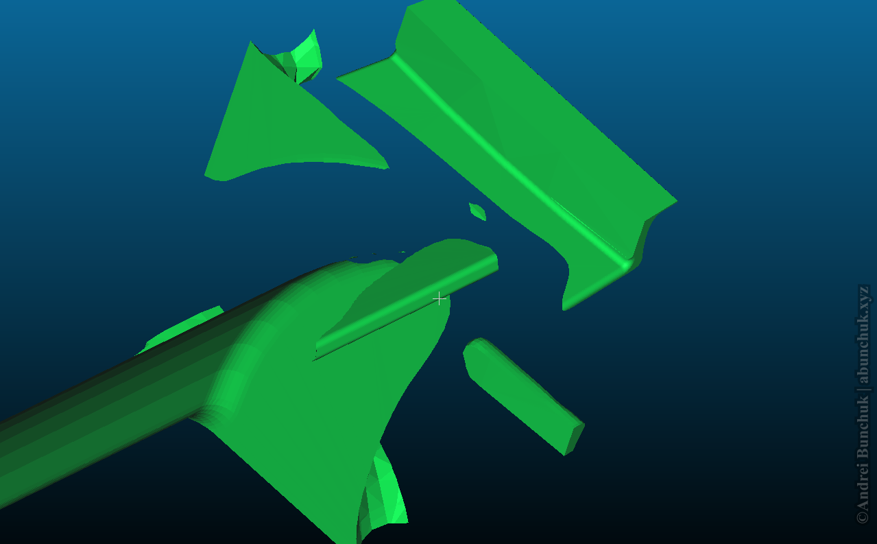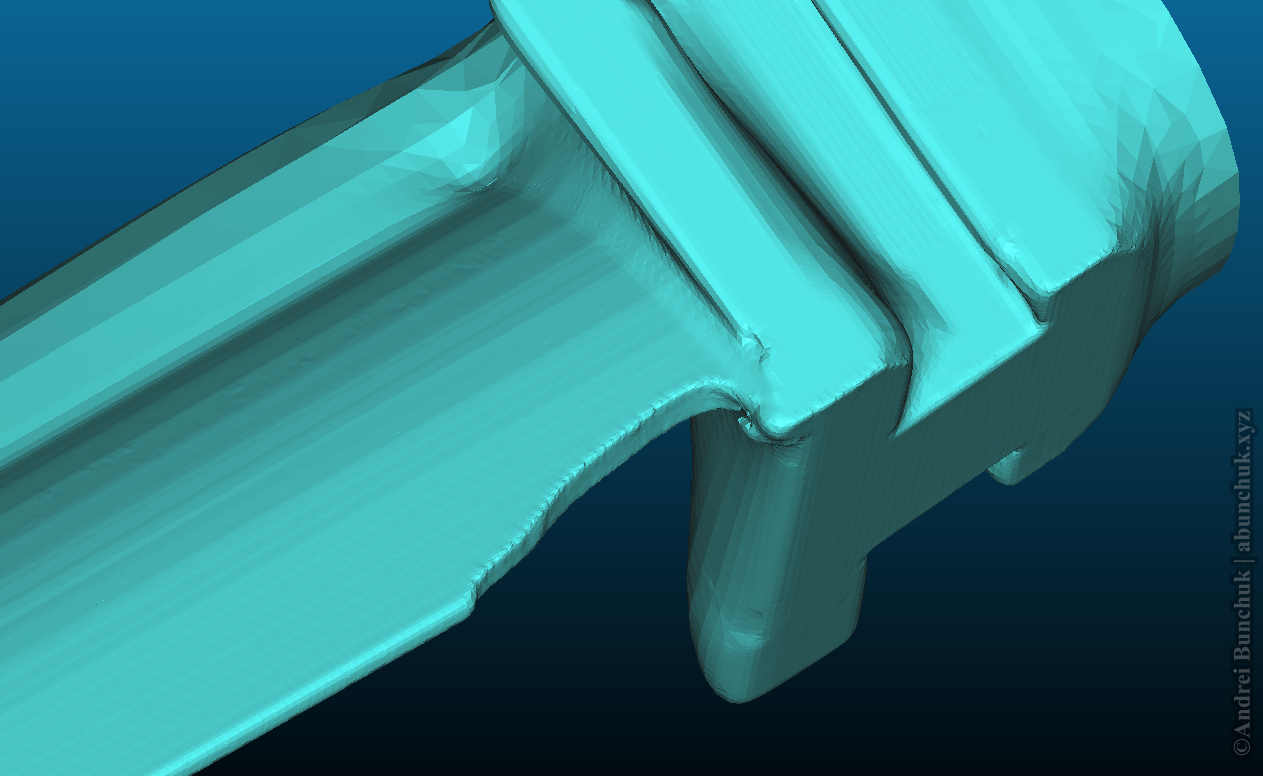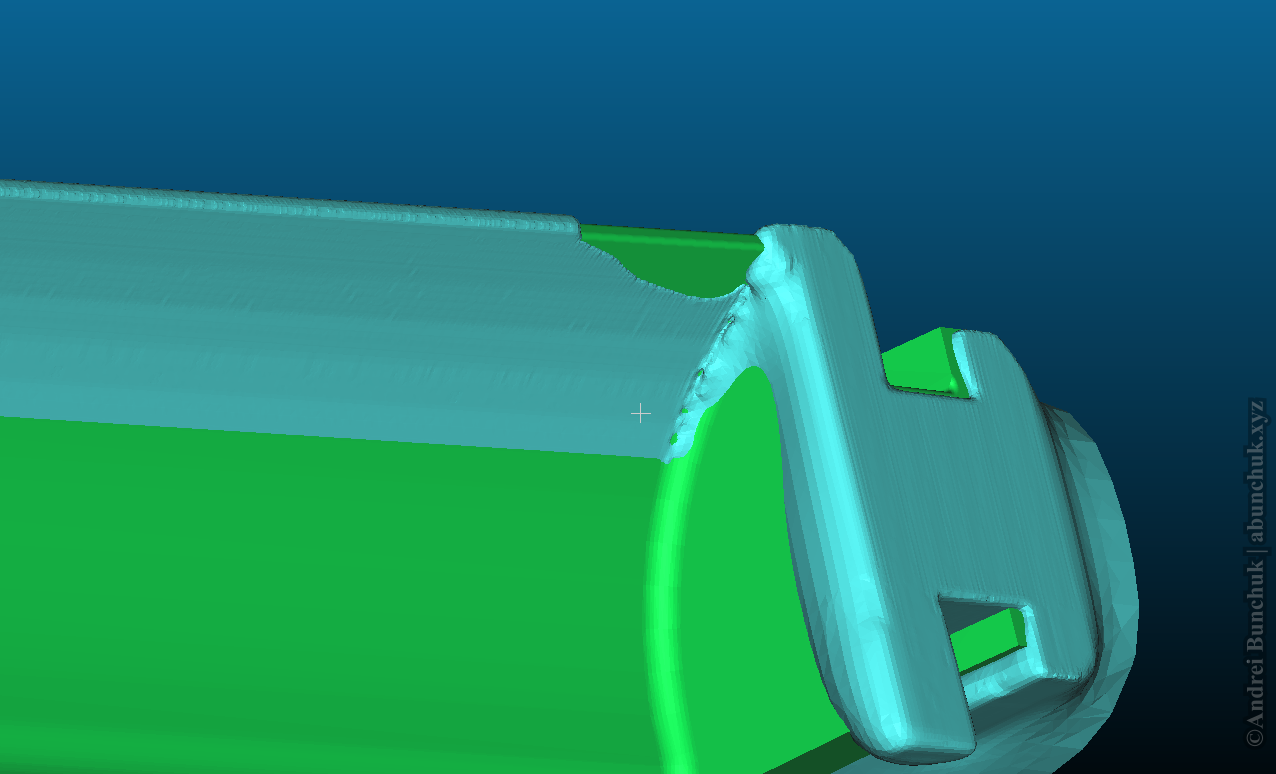 At the previous stage, the surface of the filling area was obtained, which reflects the deviation of the scanned part from the reference 3D model.