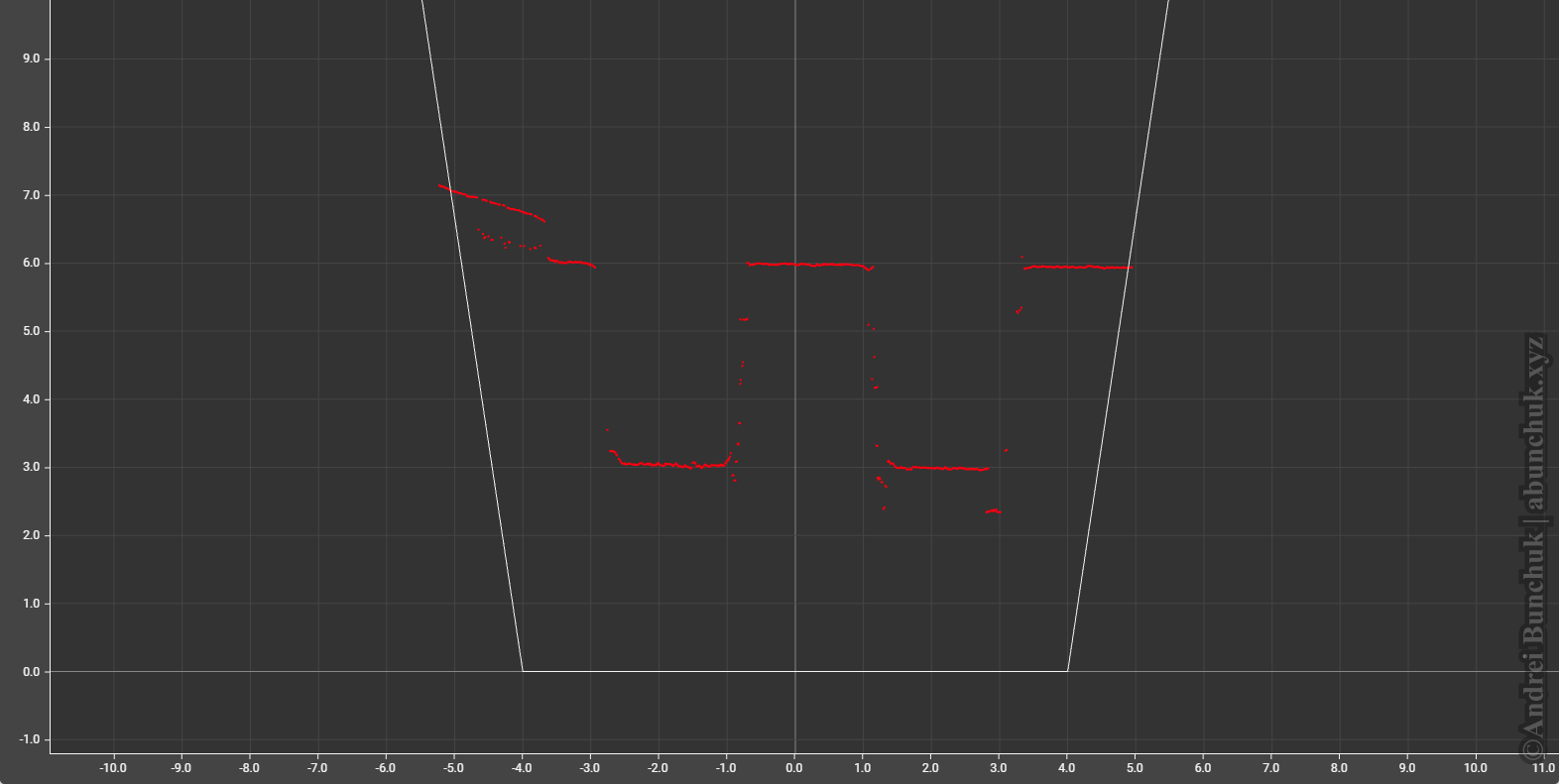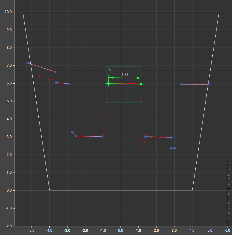 However, when examining the frame, it is clear that the dots were detected not on the side surfaces, but in the area of reflection.